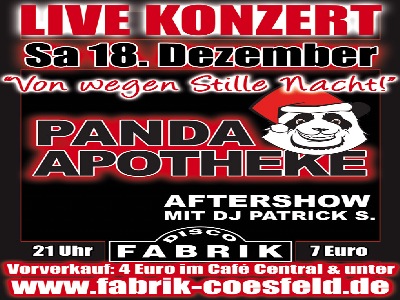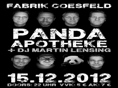 15.12.2012 HEUTE! 22:00 Doors und 23:00 Uhr dann spätestens! Panda Apotheke live auf der Bühne der Fabrik in Coesfeld! Bis gleich!
