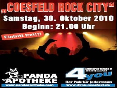 19.10.2010 Nicht vergessen: Nächste Woche Samstag, 30.10. Coesfeld Rock City mit der Panda Apotheke im Pub4you.